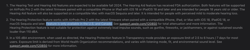 A differenza di Apple Intelligence, che ha limitazioni di lingua e normative in Europa, la restrizione geografica delle funzionalità uditive potrebbe essere collegata al fatto che Apple ha ottenuto l’autorizzazione dalla FDA (Food and Drug Administration) negli Stati Uniti per commercializzare gli AirPods Pro 2 come apparecchi acustici di “grado clinico”.