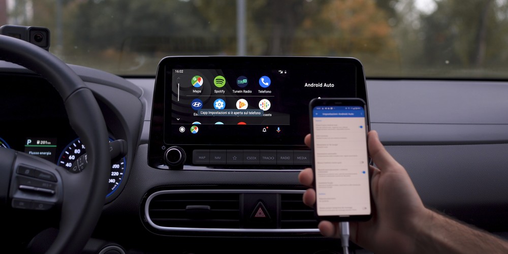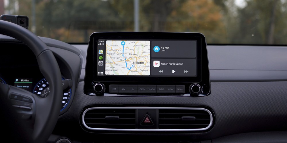 Sia nel caso di Apple CarPlay sia per Android Auto le più recenti versioni hanno introdotto migliorie importanti a livello di interfaccia. Per realizzare questo contenuto ci siamo avvalsi della collaborazione di Hyundai che ci ha gentilmente fornito una Kona Hybrid (da noi provata a settembre) dotata di un fantastico display da 10,2 pollici di diagonale caratterizzato da una qualità altissima del pannello e da una reattività altrettanto buona ma, soprattutto, da un rapporto di forma decisamente allungato e perfetto per mettere in evidenza una delle differenze più importanti tra i due sistemi. Parlo del ridimensionamento e dell’adattamento dell’interfaccia alla forma e alla risoluzione del display.
