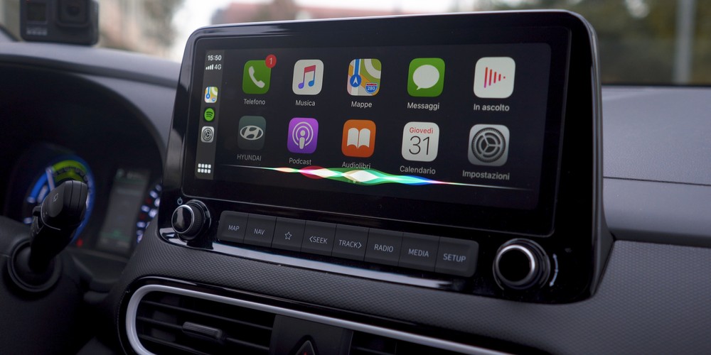 Con l’ultima versione di CarPlay che, è giusto dirlo, si installa automaticamente con l’aggiornamento del vostro iPhone ad iOS 13, Apple introduce l’adattamento automatico alle diverse risoluzioni dei display delle auto compatibili. Questo significa che non avremo mai zone “morte” all’interno dell’interfaccia e tutto verrà automaticamente esteso ai confini dello schermo senza però distorcere le immagini. Tutto ciò non accade con Android Auto che è invece bloccato sui 16:9 e che su un display allungato come quello di Kona sfrutta solo una parte del pannello, oscurando la porzione eccedente.