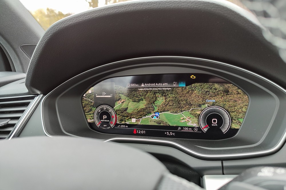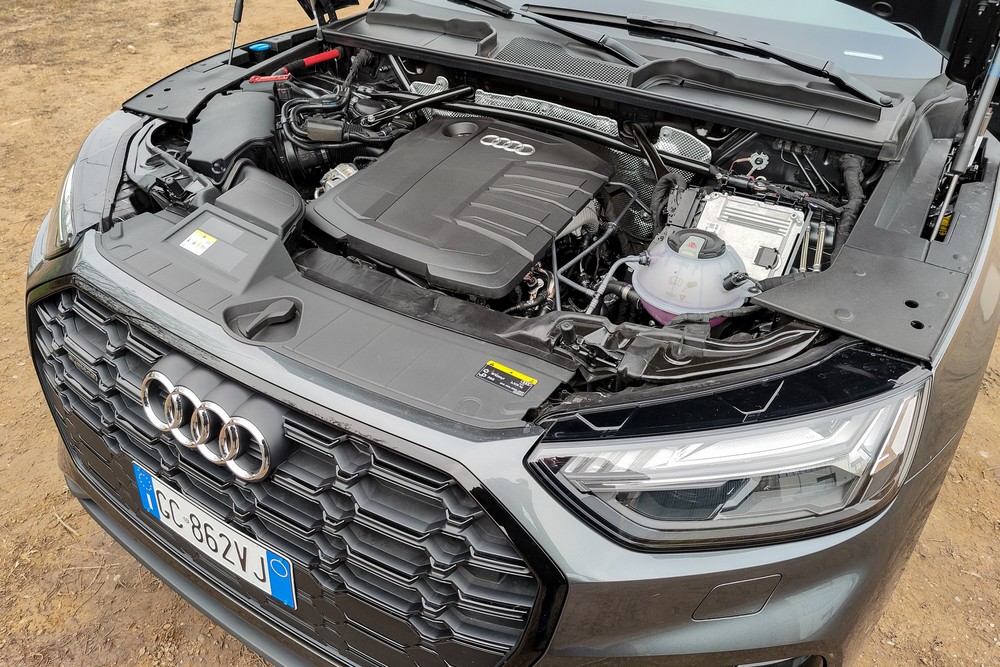 Il sistema permette di omologare la nuova Audi Q5 come ibrida in tutte le sue versioni. I motori benzina e diesel Euro 6D consentono di accedere ai vantaggi fiscali della categoria. Oltre alle emissioni di CO2, minori sui diesel, ci sono però gli ossidi di azoto (NOx) da contenere: per questo tutte le Q5 diesel utilizzano un sistema SCR twin dosing, quello di ultima generazione con doppia iniezione d’urea (l’AdBlue, una spesa da tenere in conto visto che si tratta di un consumabile) che avviene a monte di ben due catalizzatori disposti in serie. Sulla 40 TDI quattro S tronic in prova il sistema è il 12V con start/stop dai 15 km/h e batteria da 68 Ah.