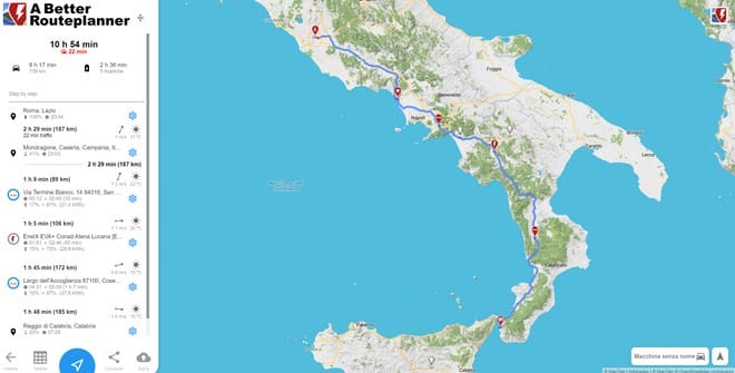 Possiamo guardare gli itinerari simulati nelle immagini di questo articolo e possiamo essere tutti d’accordo che fare Roma-Reggio Calabria – con un’utilitaria elettrica e allo stato attuale della rete – sia più lungo rispetto ad una qualsiasi auto termica. Saremmo tutti obbiettivi nel dirlo.