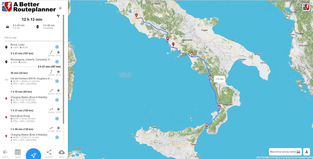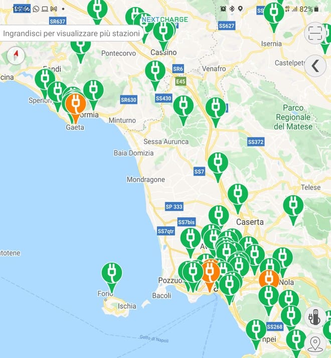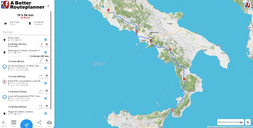 Curiosa, poi, la scelta di fermarsi a Mondragone. Poteva essere una tappa obbligata per esigenze di lavoro o personali, ma guardando la mappa è palese che si tratti di un buco nero per la mobilità elettrica, circondato da città molto più ricche di colonnine. Era davvero necessario fermarsi lì per la notte?