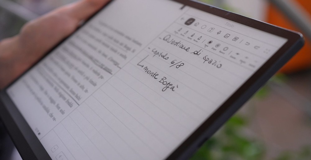 Per attivarla bisogna fare swipe dal lato destro del vostro ebook fino a metà pagina col pennino ed è una modalità che può tornare utile, ancora una volta, in ambito scolastico e accademico, ad esempio per studiare un testo poetico, scriverne la parafrasi “a fronte” o provare a eseguire gli esercizi proposti dal libro di matematica, tutto sullo stesso schermo. Vale anche per chi si dedica allo studio di una lingua straniera, sia che debba prendere appunti da una grammatica o che si avventuri nella lettura di un testo in lingua.