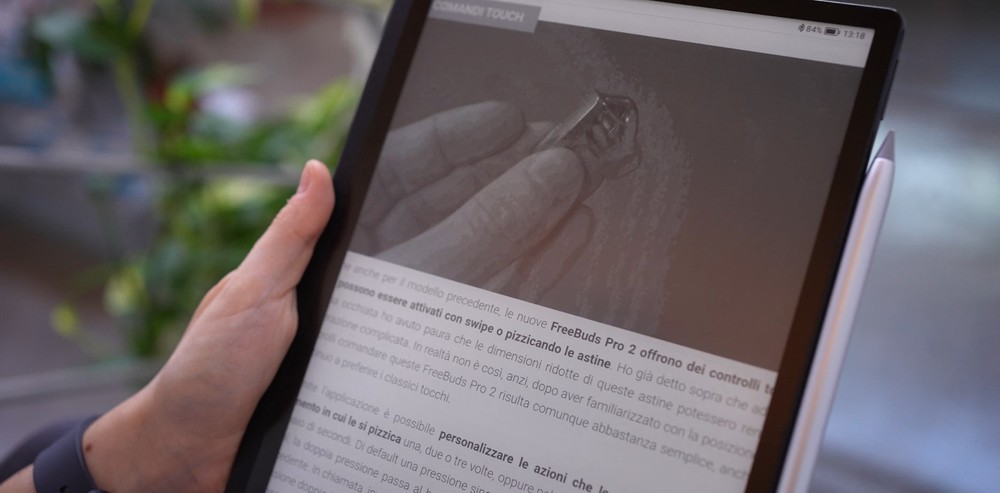 Nel caso del MatePad Paper è utile la modalità di connessione Mirror, che permette di replicare lo schermo del PC direttamente sul display del tablet: così potete sfruttare il MatePad quando magari dovete svolgere qualche task di sera, come rispondere alle mail o leggere un lungo documento, senza affaticare troppo la vista. Tutto questo avviene grazie alla tecnologia e-ink, che porta con sé anche una “frequenza di aggiornamento” molto diversa rispetto a quella cui siamo abituati sui normali tablet OLED o LCD.