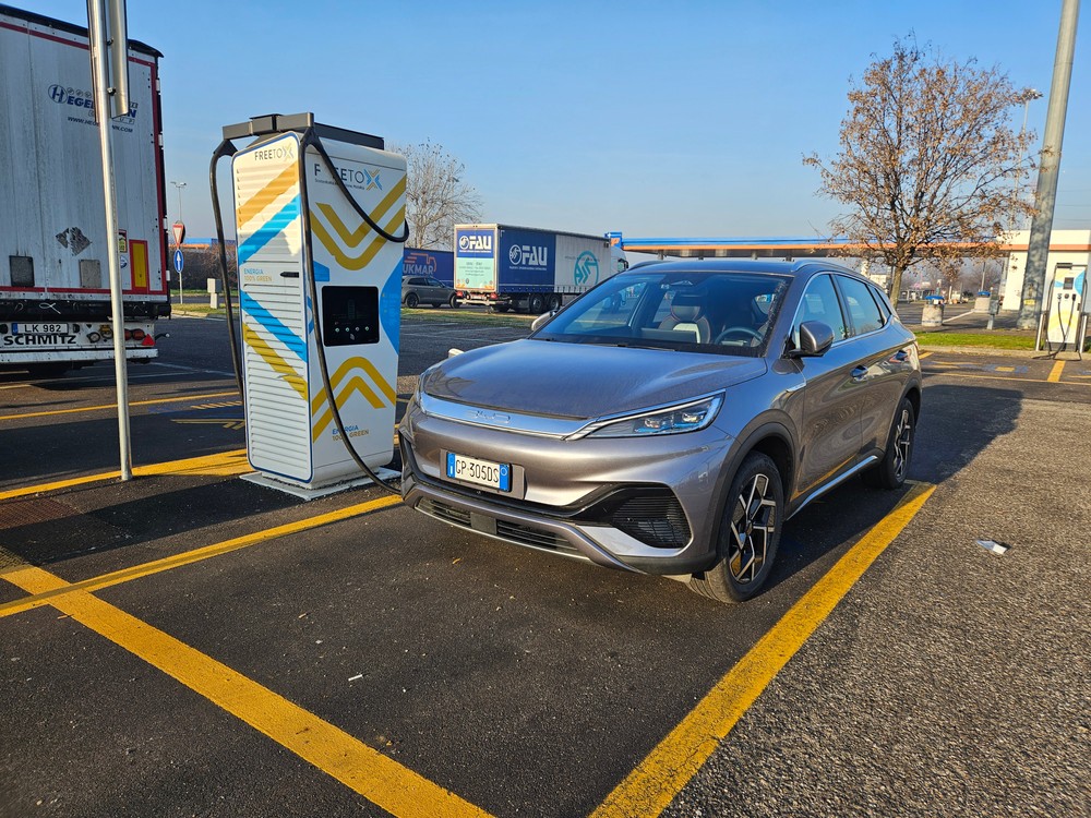 Quindi, come si è comportata la BYD Atto 3 in questo viaggio di 301 km? Per completare tutto il tragitto è stato necessario effettuare una sosta di ricarica presso una stazione IONITY.