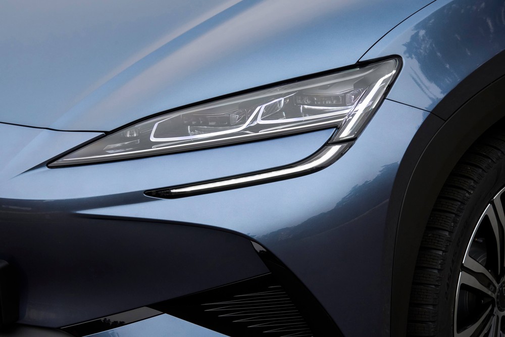 Sopra il lunotto dal design tagliato da coupè, troviamo un alettone che fa coppia con uno più piccolo posto nella parte inferiore, dettagli che danno quel tocco di sportività in più. Rispetto la Tesla Model Y, la BYD mostra un po’ più di audacia con il suo stile da suv-coupé che non ammette vie di mezzo: o si ama o si odia.