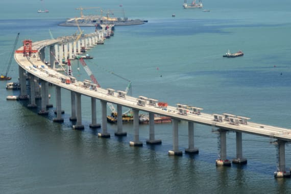 Lungo 55 km, è il ponte marino più lungo del mondo ed è appena stato inaugurato: in tanti in queste ore stanno parlando del viadotto che unisce Hong Kong, Zhuhai e Macao, le tre grandi città sul delta del Fiume delle Perle, in Cina. L’ultima gettata di calcestruzzo è stata fatta nel mese di novembre 2017; il 24 ottobre 2018 avverrà il passaggio dei primi veicoli. Stando alle informazioni ufficiali, il costo complessivo dell’opera iniziata nel 2009 e terminata due anni dopo la consegna stimata iniziale, è stato di 20 miliardi di dollari (17,4 miliardi di euro).