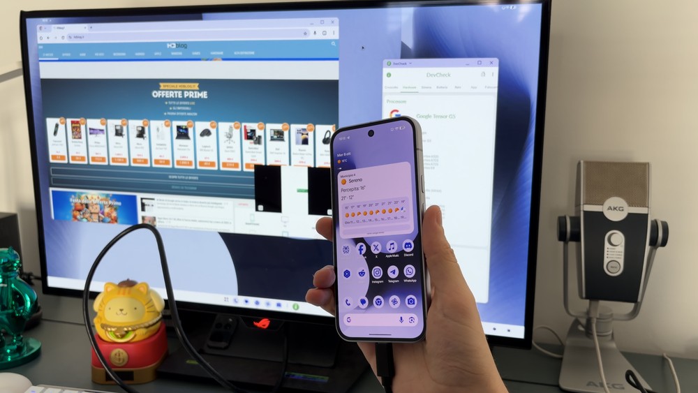 Infine, la porta USB-C. Quella 3.2 con uscita video del Pixel ha molto senso in vista della futura modalità desktop in versione “stabile”. Attenzione però: anche se l’iPhone si ferma a una lenta USB 2.0, supporta comunque l’uscita video. La velocità di trasferimento dati, probabilmente, è stata limitata volutamente da Apple per spingere i creator a scegliere i modelli Pro.
