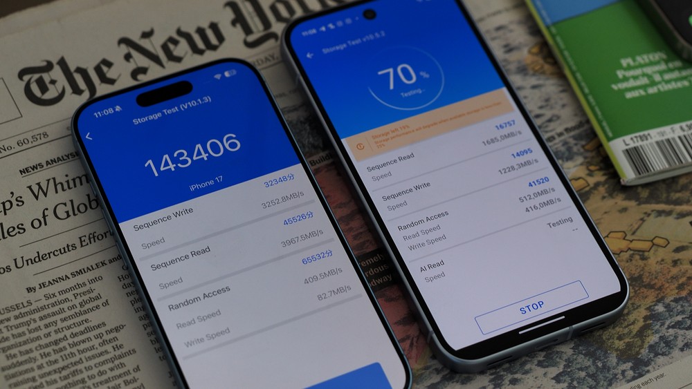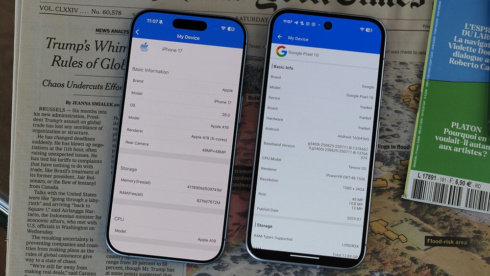 Scheda tecnica a parte, possiamo affermare che entrambi sono ottimi telefoni per l’uso quotidiano con social, app di messaggistica e documenti. Entrambi, però, hanno dei difetti. Il Pixel soffre di microlag più frequenti, specialmente nel taglio da 128GB con memorie lente, che a volte mette in crisi persino la galleria fotografica. L’iPhone 17, invece, ha una gestione a volte non perfetta del cambio di refresh rate in app come X, anche se è un difetto difficile da percepire.