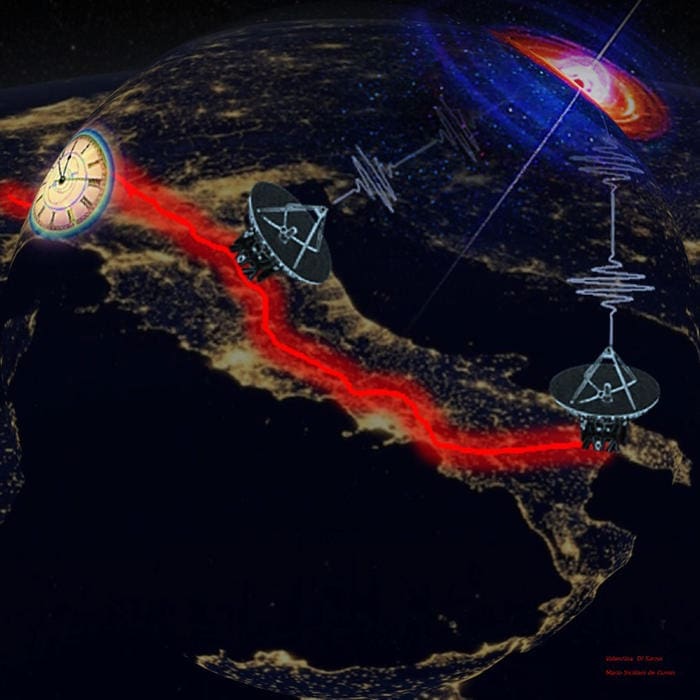 Lo studio del cosmo ha un nuovo alleato: la dorsale italiana in fibra ottica, che offre agli astrofisici, grazie a laser e orologi atomici di ultima generazione, la possibilità di collegare i maggiori radiotelescopi italiani in un’unica infrastruttura per lo studio dei fenomeni astronomici. Lo ha annunciato l’Istituto Nazionale di Ricerca Metrologica (Inrim) in uno studio pubblicato sulla rivista Optica coordinato da Davide Calonico, in collaborazione con l’Istituto Nazionale di Astrofisica (Inaf), l’Agenzia Spaziale Italiana (Asi) e il Consiglio Nazionale delle Ricerche (Cnr).