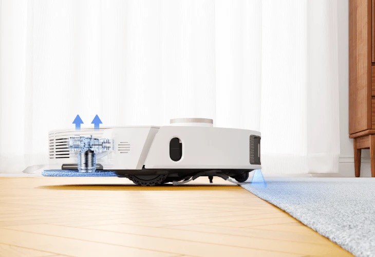 I moci controrotanti si sollevano automaticamente di 7 mm quando viene rilevata la presenza di un tappeto. Ulteriori punti di forza di sono il supporto per la registrazione di tre distinte mappe del pavimento, la possibilità di superare soglie di 20mm e di rilevare le cadute.
