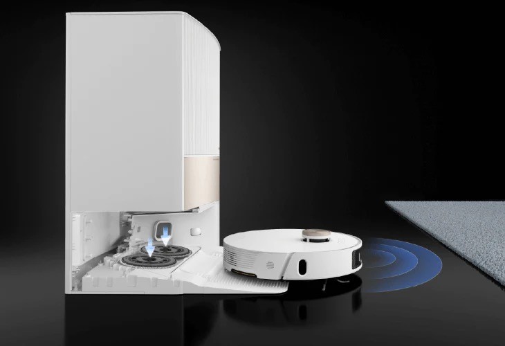 DreameBot L20 Ultra automatizza la pulizia quotidiana grazie alla funzione di auto-svuotamento, autopulente e autoasciugante de moci, riempimento con acqua e aggiunta di detergenti. L’avanzato sistema di rilevamento a ultrasuoni dei tappeti consente a L20 Ultra di identificare tappeti e moquette, mantenendoli asciutti e puliti, e di tornare alla base per staccare i moci (se l’opzione è stata attivata).
