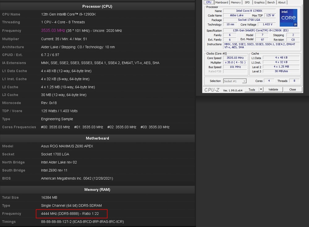 I due partner taiwanesi alzano l’asticella prestazionale con il nuovo record DDR5, raggiunto con le G.Skill Trident Z5 in coppia con una scheda madre ASUS Z690 Apex e un Intel Core i9-12900K. Per l’occasione è stato utilizzato un sistema di raffreddamento ad azoto liquido, mentre il record è arrivato con configurazione Single-Channel e una frequenza DDR5 8.888 MHz con timing 88-88-88-88-127.