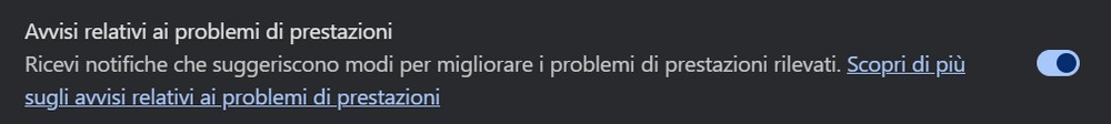 Se il rilevamento automatico delle prestazioni è troppo invasivo, gli utenti possono disattivarlo accedendo alle Impostazioni, sempre nella scheda Prestazioni.