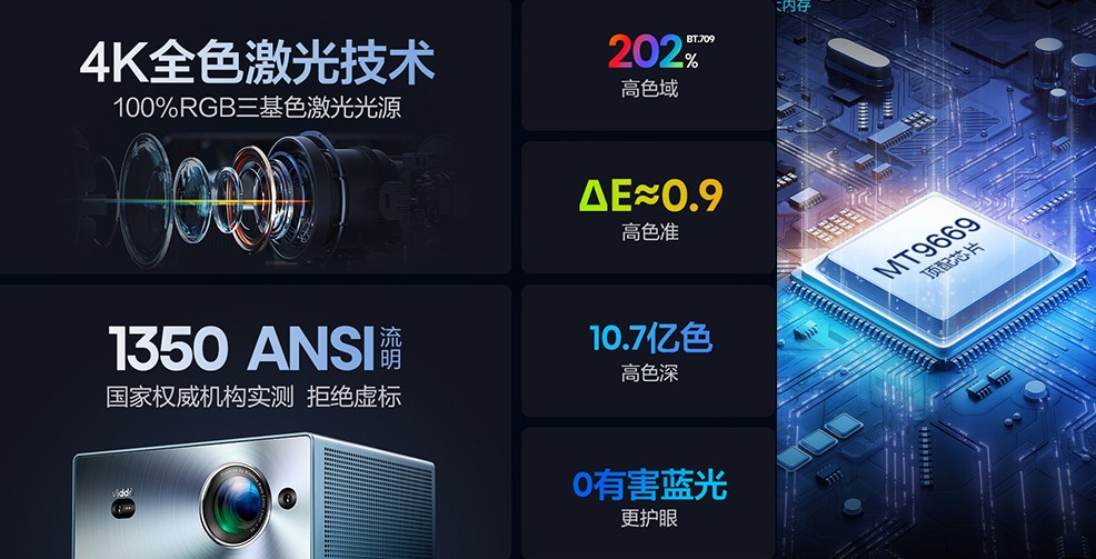 Alla base del prodotto troviamo un chip DLP, presumibilmente da 0,47″, capace di ricreare la risoluzione Ultra HD tramite XPR (eXpanded Pixel Resolution), una soluzione che consente di visualizzare 2 (per i chip da 0,66″) o 4 pixel (per i chip da 0,47″) per ciascun microspecchio. La sorgente luminosa è costituita da Laser RGB capaci di garantire un flusso luminoso di 1.350 ANSI lumen. ​