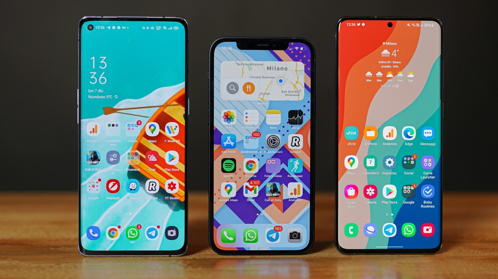 Ho la fortuna di avere accesso a tutti i migliori smartphone sul mercato, ho quindi un’idea piuttosto chiara di quali siano le tendenze estetiche e costruttive, per questo non posso che ritenere iPhone 12 vetusto, poco attraente. In tanti staranno già saltando ai commenti per insultarmi (educatamente), ne sono cosciente, ma basta guardare le enormi cornici laterali e l’ingombrante notch per spiegare la mia affermazione. Ci sono modelli ben più moderni, estremi e al passo con i tempi, cito solo ad esempio il Galaxy S20+ e il Reno 4 Pro che vedete qui sotto in foto, due tra i tanti che trovo più affascinanti e desidererei come dispositivo personale.
