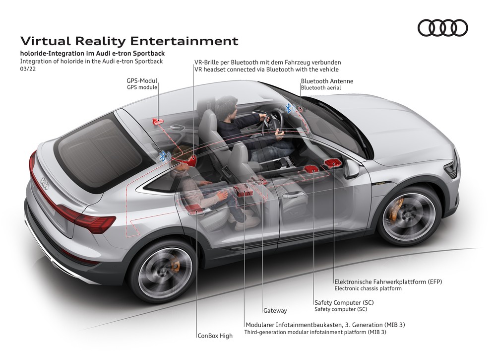 Holoride è una piattaforma di realtà virtuale che sa sempre dove si trova, in che contesto sta viaggiando e “prevede” i movimenti futuri. Il posizionamento è sincronizzato sfruttando i dati della mappa, la localizzazione GPS, i sensori stessi dell’auto e quelli del visore VR. Integrando tutti questi dati, e creando un ambiente virtuale che si “muove” con la vettura, la VR si trasforma da un’esperienza traumatica a qualcosa che risulta naturale.