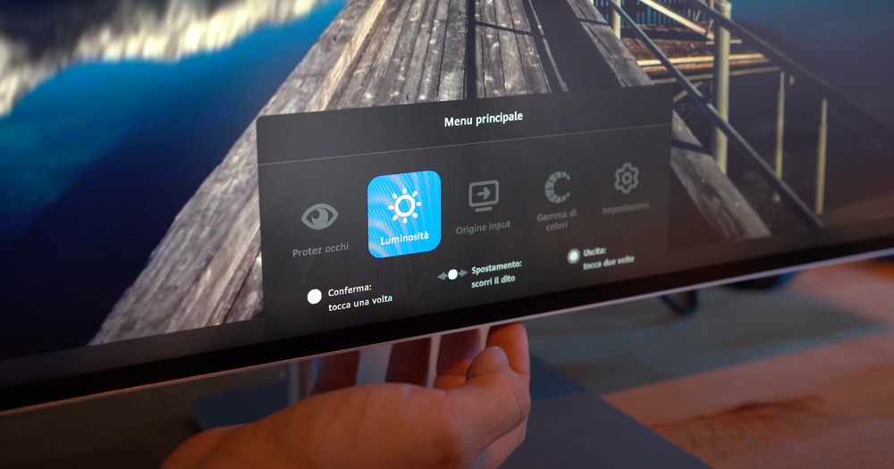 Per poter far funzionare tutto questo il nuovo MateView è dotato di un vero e proprio sistema operativo grazie a cui è possibile gestire le varie connessioni, alle sorgenti come alle periferiche, oltre che agire su alcune impostazioni più classiche come la gestione dei profili colore e dei parametri legati alla riproduzione delle immagini. Il tutto è navigabile sfruttando il mouse oppure tramite una barra touch posizionata lungo la cornice alla base del pannello. Scorrendo a destra e sinistra ci si muove nei menu, un singolo tap seleziona l’elemento evidenziato, mentre il doppio tap ci riporta alla schermata precedente.