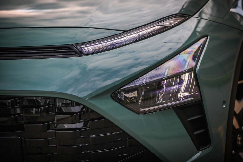 Avvicinandosi alla Bayon si percepisce subito l’influenza della Kona, soprattutto nella parte anteriore dove fa bella mostra di se la firma luminosa che corre lungo tutto il cofano motore, con una grande calandra nero lucido al centro del frontale dalla dimensioni generose. La parte posteriore è quella con lo stile più particolare: i fari hanno uno sviluppo verticale e la forma di un boomerang, e sono impreziositi da una striscia luminosa che li unisce.