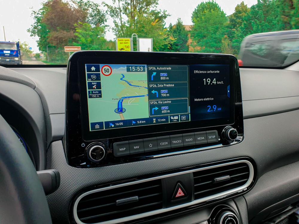 L’infotainment è il nuovo BlueLink, la prova che Hyundai ha ascoltato le richieste degli utenti proponendo nel segmento mass market un sistema fluido e reattivo nell’interfaccia e completo nelle funzioni. La SIM 4G è il cuore del sistema connesso che sfrutta la rete anche per ottimizzare il sistema ibrido con i dati sul traffico e abilita il controllo remoto tramite app, anticipando le caratteristiche che vedremo sul nuovo model year di Kona Electric e sul resto della gamma nei prossimi tempi.