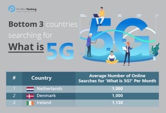 Dopo avere individuato le domande ricorrenti, Prolifics Testing ha calcolato quante volte al mese in media gli utenti hanno cercato una risposta su Google, ed in base a questi dati ha stilato una classifica dei Paesi più diffidenti nei confronti delle nuove reti.