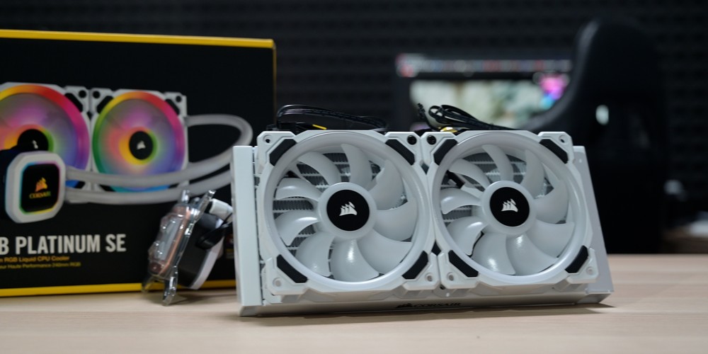 I led sulla pompa sono gestibili tramite il software iCUE, così come la curva di raffreddamento. I due tubi rinforzati collegano la pompa al radiatore in alluminio da 240mm sul quale alloggiano due delle ventole di cui parlavamo in precedenza, le LL120 RGB.