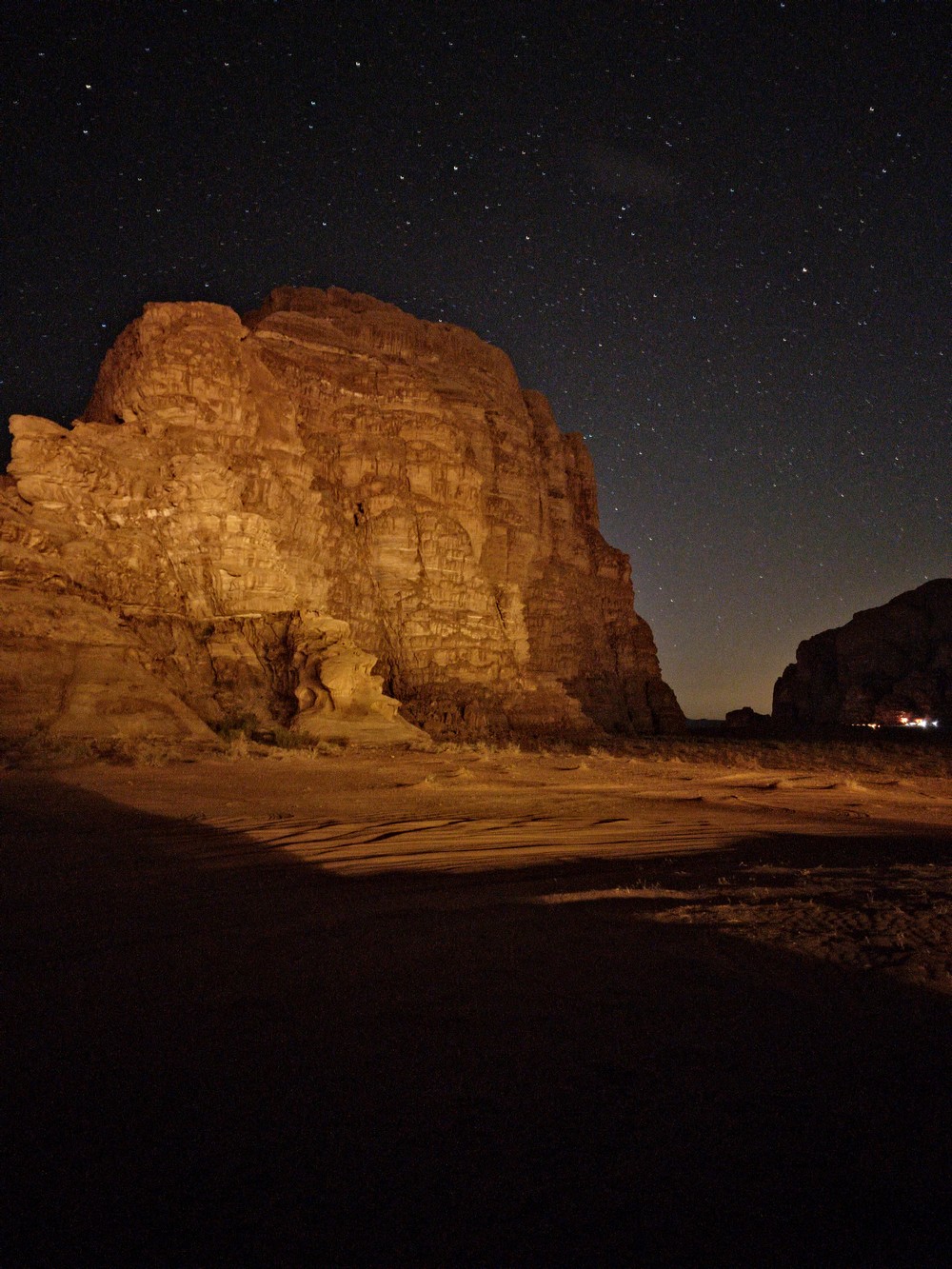 Purtroppo però anche il deserto non è più così deserto e persino una zona del mondo completamente isolata dall’esterno deve fare i conti con il problema dell’inquinamento luminoso, in particolare quello prodotto da altri campi. Il cielo stellato del Wadi Rum è stato quindi meno di impatto di come ci saremmo aspettati, ma ci ha comunque permesso di tentare qualche scatto di astrofotografia.