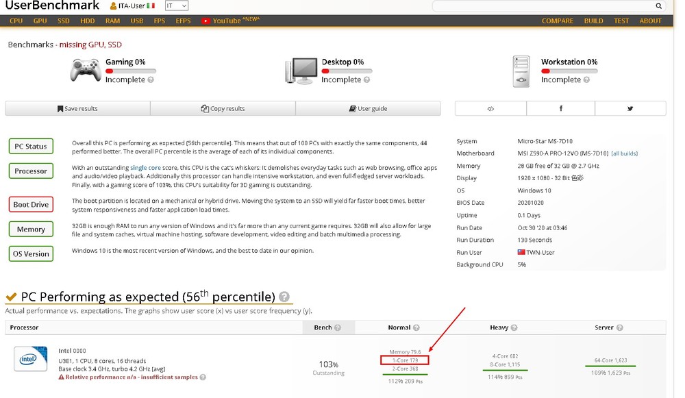 Con un punteggio di 179 punti questo processore risulta circa il 21% più veloce di un Core i7-10700K e il 18% rispetto al modello di punta Core i9-10900K, accreditati rispettivamente di 148 e 152 punti. Un risultato degno di nota per Intel che, allo stesso tempo, sembra aver anticipato questi dettagli per rassicurare la clientela e non solo, reduce da un terzo trimestre tutt’altro che roseo con importanti impatti sul titolo in borsa.