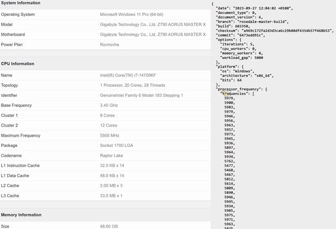 Purtroppo Geekbench non permette di capire la metodologia di overclock utilizzata per il test che potrebbe quindi essere manuale o effettuata direttamente dal BIOS. Con gli aggiornamenti firmware in funzione dei processori Raptor Lake Refresh, infatti, alcune schede madri di fascia alta Z790 disporranno di opzioni per spingere i nuovi processori Intel oltre i 6 GHz. Questo, ovviamente, a patto di avere a disposizione soluzioni di raffreddamento in grado di tenere a bada CPU che minacciano di raggiungere consumi estremamente elevati.