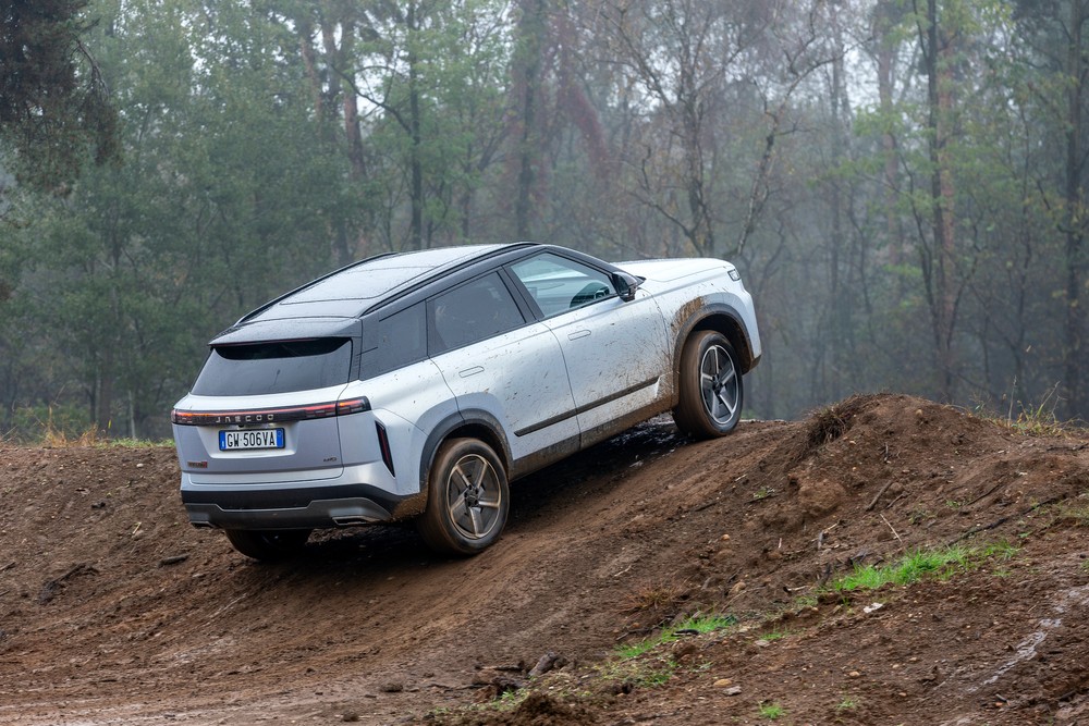 Un piccolo trasferimento autostradale, con troppo traffico per testare l’insonorizzazione, ed eccoci con le ruote nel fango. Qui JAECOO 7 cambia faccia. Pur non trattandosi di un fuoristrada vecchia scuola, di quelli con telaio a longheroni, la rigidità della piattaforma gli permette di affrontare bene anche qualche twist.