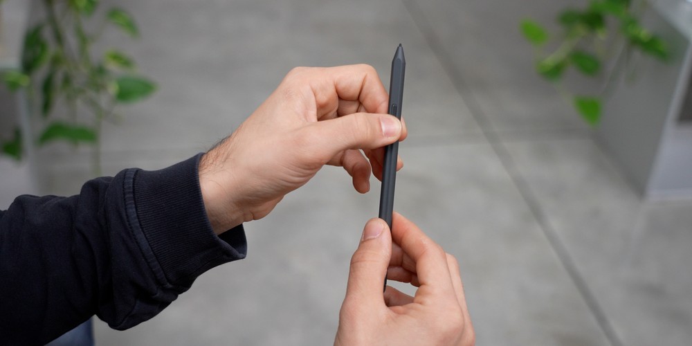 Buona nel complesso l’ergonomia in fase di scrittura, anche grazie alla spalla che dà modo di tenerlo in mano senza coprire lo schermo, sia che lo si impugni con la sinistra sia che, nel caso dei mancini, lo si tenga con la mano destra sfruttando la rotazione automatica.