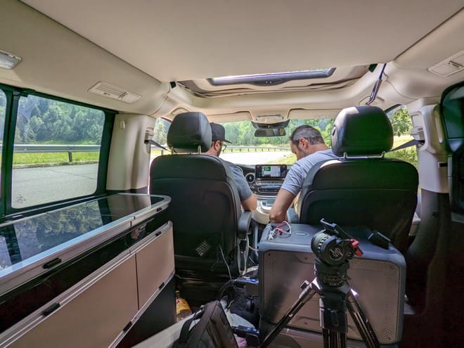 Per fotografare le stelle era necessario isolarsi il più possibile dall’inquinamento luminoso della pianura padana, per questo abbiamo scelto di alzarci di quota. Individuato l’itinerario abbiamo sentito Mercedes che gentilmente ci ha messo a disposizione un mezzo di supporto (e che mezzo!): il van Marco Polo, ovvero l’allestimento camperizzato sulla base di Mercedes Classe V.