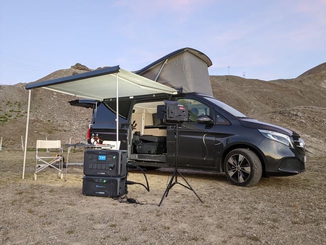 Per fotografare le stelle era necessario isolarsi il più possibile dall’inquinamento luminoso della pianura padana, per questo abbiamo scelto di alzarci di quota. Individuato l’itinerario abbiamo sentito Mercedes che gentilmente ci ha messo a disposizione un mezzo di supporto (e che mezzo!): il van Marco Polo, ovvero l’allestimento camperizzato sulla base di Mercedes Classe V.