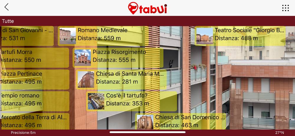 Grazie alla localizzazione fornisce informazioni su arte e cultura, luoghi da vedere, ospitalità, ristorazione, attività sportive, percorsi trekking, eventi, etc. Tutto arricchito di schede, link, numero di telefono e ogni altro dettaglio utile. Il valore aggiunto è che con la realtà aumentata si possono individuare con uno sguardo al terminale tutti i punti di interesse con relative distanze e direzioni.