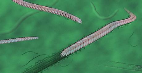 Ricostruzione grafica del verme Yilingia spiciformis, vissuto 550 milioni di anni fa (fonte: Dr. Zhe Chen, Nanjing Institute of Geology and Paleontology)