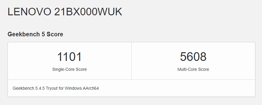Il test con Geekbench 5 mostra dati inferiori rispetto ad un Air con M1 (intorno ai 1.700/7.500) ma, a prescindere dal risultato, anche una cinquantina di schede Chrome in contemporanea non mettono in crisi l’X13s, lasciando spazio ad altre applicazioni di produttività.