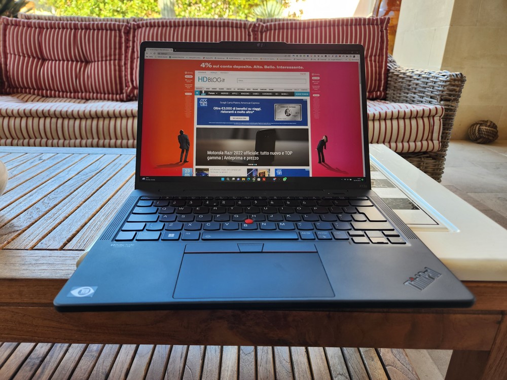 La promozione disponibile al momento in cui sto scrivendo queste righe lo posiziona a partire da 1.574€ (MacBook Air M2 ne costa oggi 1.529€). Certo, il ThinkPad è molto più leggero dell’Air grazie alla lega di magnesio della sua scocca, 1,06 kg contro 1,29 kg dell’ultra portatile di Apple e monta un modulo 5G sub6 e mmWave, però non può gestire operazioni come il video editing che l’Air macina senza problemi.