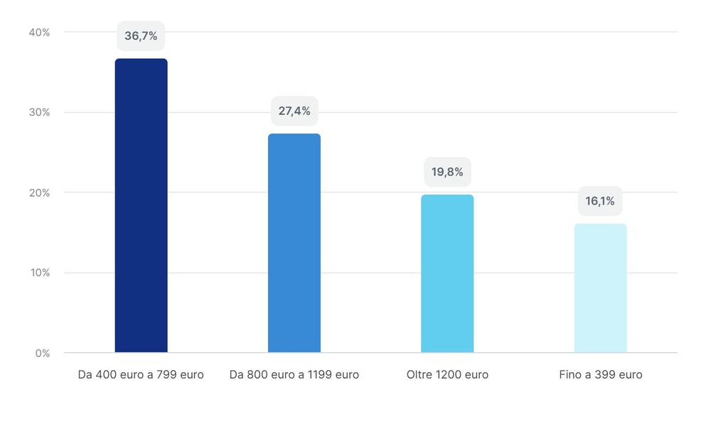 Sono meno quelli disposti a spendere oltre i 1200 euro, una soglia a cui immaginiamo che guarderanno molti acquirenti della Mela, e quelli che al contrario non vogliono investire più di 399 euro.