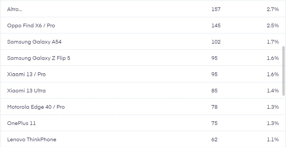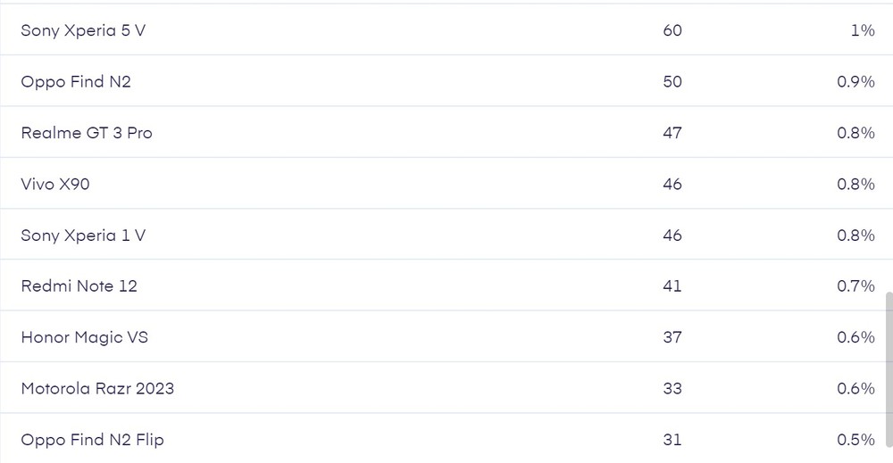 Nella top 10 anche due pieghevoli, il “rumoreggiato” Pixel Fold e lo Z Fold 5, ma non manca anche un altro smartphone dal form factor distintivo ovvero lo ZenFone 10, che probabilmente sarà ancora una volta la scelta di chi desidera un top di gamma davvero compatto. Chiudono le prime dieci posizioni l’iPhone 15 e la variante Plus, oltre all’Oppo Find X6 e X6 Pro.