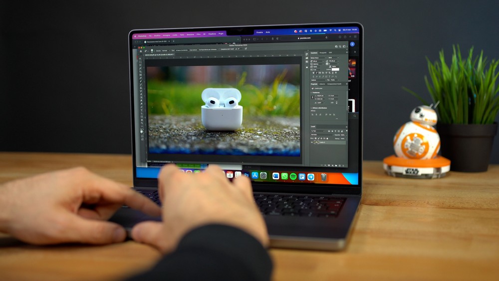 Il display è poi un altro elemento distintivo: sebbene ci siano soluzioni Oled sul mercato che possono avere anche un impatto migliore a prima vista, è la luminosità del pannello e il confort visivo che fanno la differenza. Lavorare ovunque con questo display è un’esperienza di rara qualità: non solo è super luminoso e potete anche impostare i 1500nits di picco se lo desiderate, ma è l’attenuazione fine della retroilluminazione, il True Tone e tutti gli adattamenti automatici alla luce che rendono estremamente confortevole l’utilizzo del portatile in qualunque condizione di luce.