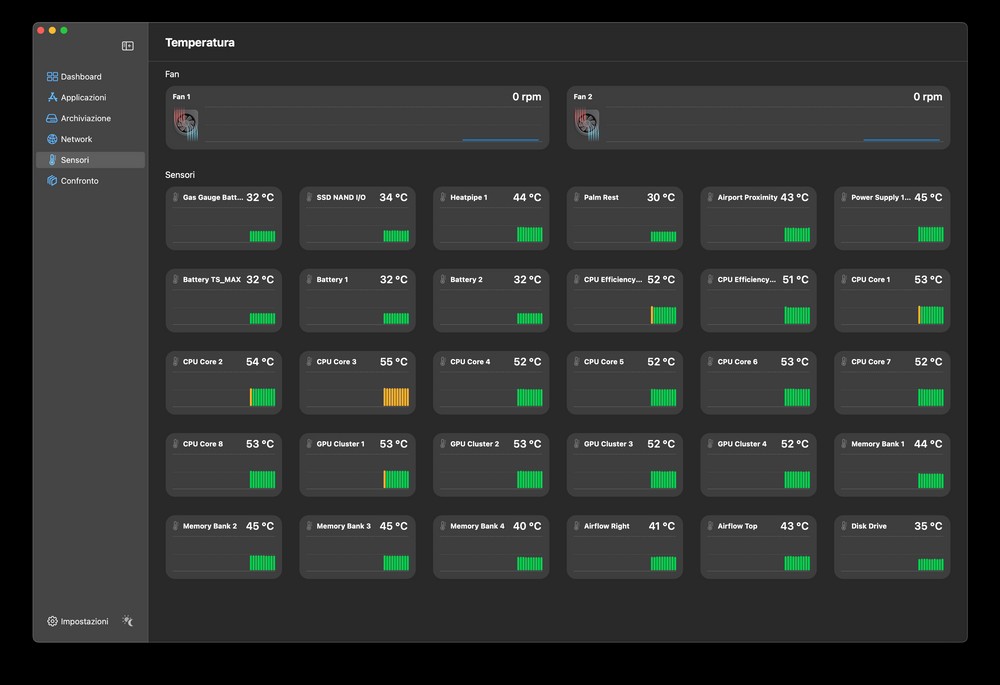 Il motivo è che la piattaforma M1, anche nella sua versione Max, ha una temperatura di esercizio estremamente bassa e che difficilmente supera i 50 grado anche dopo tante ore. Se poi sfrutto la modalità risparmio energia e il mio lavoro si limita a Chrome e app di scrittura, ecco che i 35 gradi di media sono considerabili stabili.
