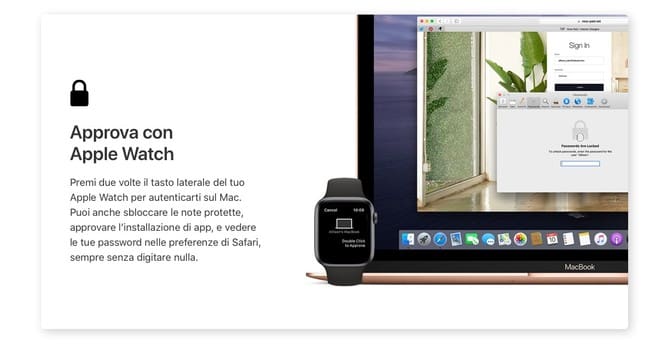 Un Apple Watch collegato a un Mac con macOS Catalina potrà essere utilizzato anche per la verifica in tutti quei contesti dov’è necessario digitare la password del Mac o per approvare le installazioni di app. Per l’autenticazione basta fare un doppio clic sul pulsante laterale di Apple Watch quando viene richiesto. L’autenticazione tramite Apple Watch deve essere abilitata nella sezione Sicurezza e privacy delle Preferenze di Sistema. Apple Watch, inoltre, può anche ricevere codici di verifica quando si accede al proprio Apple ID su un nuovo Mac, iPad o iPhone.