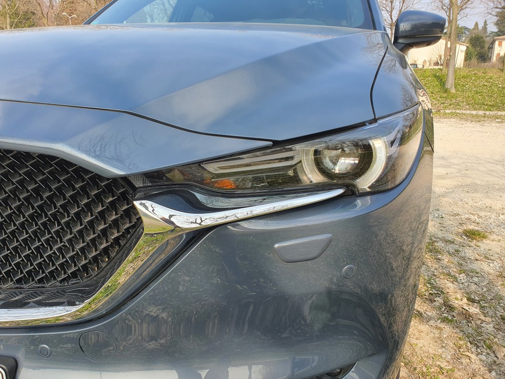 Per questa prova su strada ho scelto un percorso misto. Oltre a città, statale e autostrada, ho deciso di portare il SUV in montagna per saggiarne le doti stradali su di un misto impegnativo e anche su qualche strada sterrata visto che l’esemplare in prova era dotato della trazione integrale. Ovviamente, parliamo di un SUV di oltre 4,5 metri con una massa importante e non di una sportiva, ma devo dire che Mazda ha lavorato bene sull’assetto. Gli affinamenti apportati a questa versione 2021 si sentono tutti e il CX-5 è piacevole da condurre, anche sul misto, ed è possibile adottare pure uno stile di “guida aggressivo” senza problemi.
