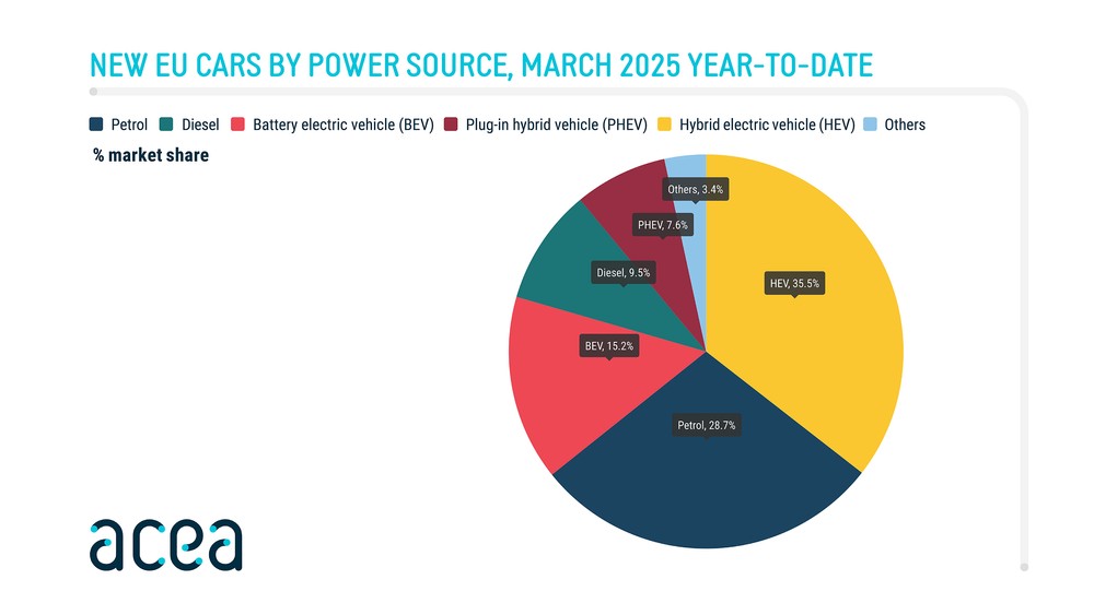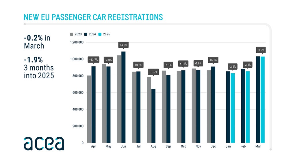 A Marzo 2025, le immatricolazioni in Unione Europea sono state 1.029.519 pari ad un leggero calo dello 0,2%. Considerando anche Regno Unito e Paesi EFTA, c’è stata invece una crescita del 2,8% (1.422.628 immatricolazioni).
