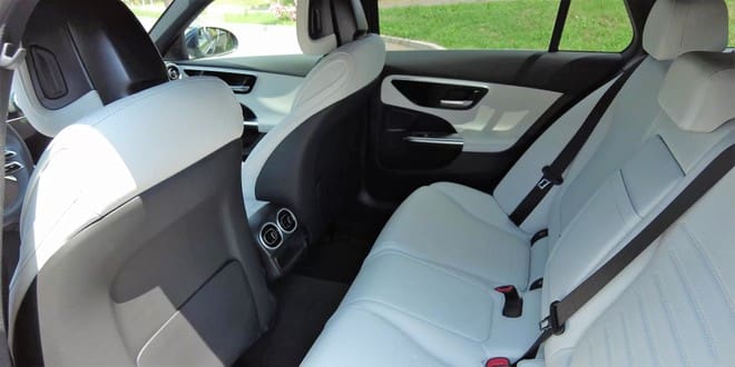 Il listino della Classe C Station Wagon ibrida plug-in a benzina parte da 59.155 Euro per la versione Sport e arriva ai 68.931 della più ricca Premium Pro. Potete scegliere tra cinque versioni: Sport, Premium, Sport Plus, Premium Plus e Premium Pro. Oltre alla ricca dotazione di serie, comune a tutte le versioni, quella entry level per l’ibrida plug-in è la Sport: fari anteriori LED e posteriori full LED, il navigatore, il pacchetto parcheggio, Blind Spot Assist, sedili anteriori riscaldabili e tanto altro. E molti interessanti optional non prevedono il sovraprezzo. L’esemplare in prova è una versione base con pochissimi optional a pagamento come gli interni chiari in ecopelle e gli inserti in frassino marrone lucido.