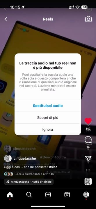 I cambiamenti in atto non riguardano solo i contenuti pubblicati dopo che l’accordo è saltato, ma tutti quelli presenti sulla piattaforma. Di conseguenza, chiunque abbia pubblicato dei reel su Instagram si troverà difronte alla necessità di decidere se mantenere il video muto o se cambiare la musica con un altro brano musicale. In caso di cambiamento, la scelta sarà definitiva.