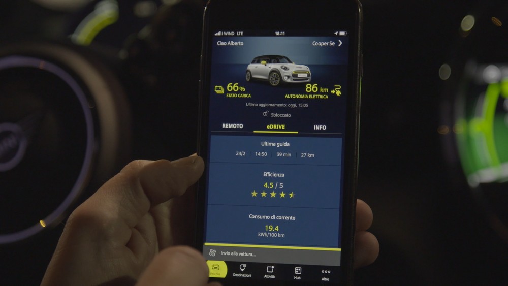 Tramite app si può gestire apertura e chiusura portiere, luci, clacson, pianificazione percorso con invio all’auto e dati su stato di carica e autonomia residua.