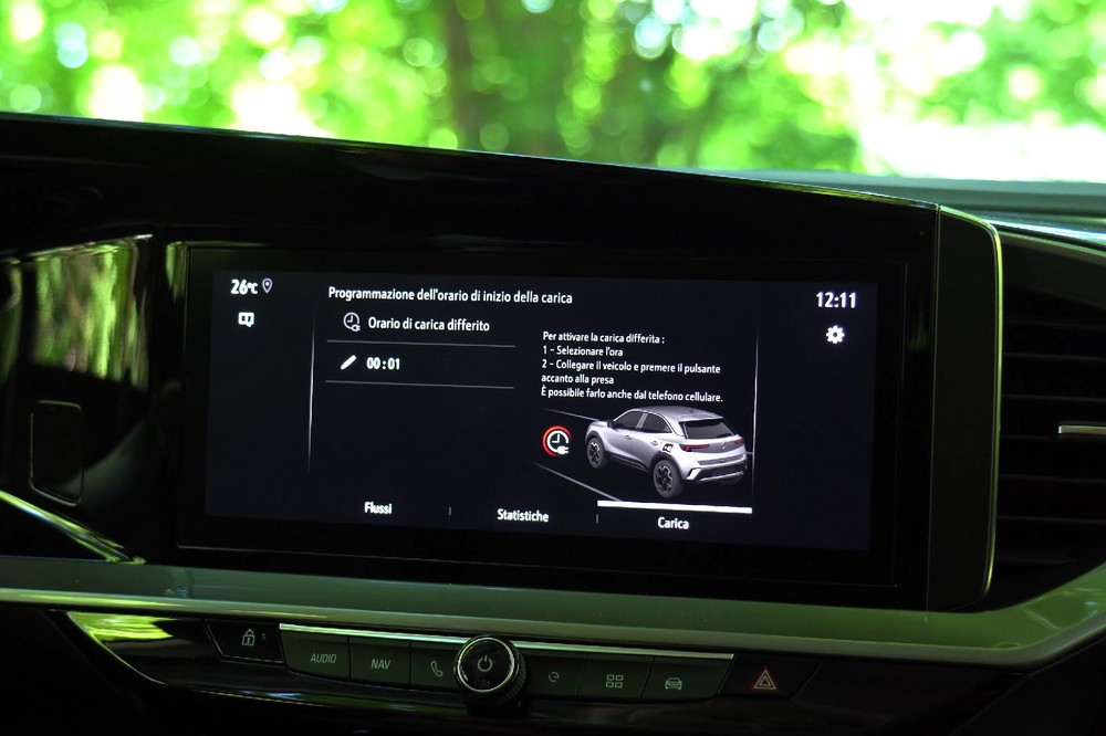 A 7,4 kW Mokka elettrica si ricarica in poco più di 7 ore mentre utilizzando la Schuko il tempo sale a più di 27 ore perché il caricatore fornito di serie è da 1,8 kW, permettendo di ricaricare a 8 A e 230 V.