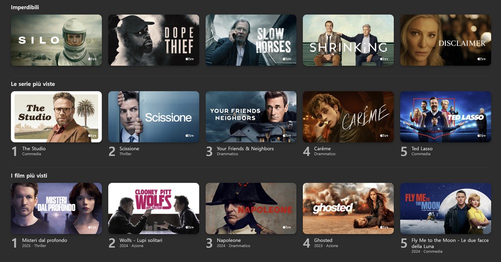 Apple TV è vero non ha mille contenuti ma è meglio così. Quelle poche cose che escono sono incredibili: Silo, Scissione, Ted Lasso, Disclaimer, Shrinking, tantissima animazione di qualità per i più piccoli, Sunny, Dark Matter, The Morning Show, For All Mankind, Afterparty. Ore ed ore di intrattenimento di altissimo livello. Niente pubblicità,qualità elevatissima, app ottimizzata divinamente, contenuti pensati per essere visualizzati su iPhone, su iPad, su TV e App che si integra benissimo con gli altri servizi sotto una bellissima grafica, tematica con il resto dello smartphone.