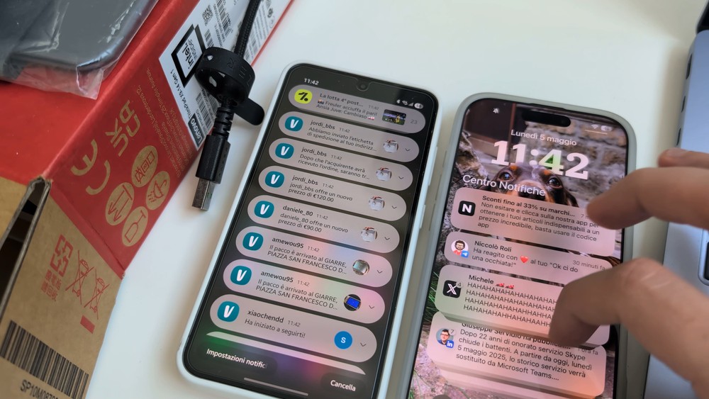 Se la notifica arrivare per la stessa cosa come “il tuo abito usato è stato messo nei preferiti” ha senso accorparle, come ha senso se si ricevono due proposte differenti per due articoli differenti avere due notifiche distinte, non sovrapposte. iPhone fa proprio ciò, con senso, mentre sugli altri viene lasciato tutto alla casualità. Ed eccoci allora lì a fare un doomscroll infinito delle notifiche.